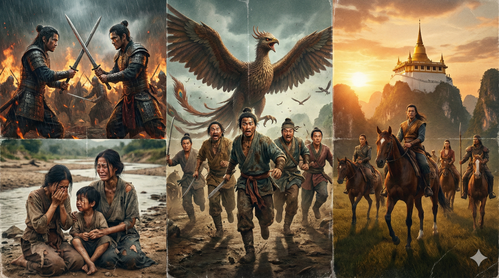อีกฟากหนึ่ง “สิงห์” หนุ่มพเนจรได้แหวนวิเศษมีกุมารฤทธิ์–เดช รับใช้ พัวพันกับอมราวดีธิดาโหดแห่งอุตรนคร ถูกกาฬราชสาปเป็นแวมไพร์ ต้องดิ้นรนเอาตัวรอดกลางเกมรัก เกมหลอก และการแย่งชิงมณีเจ็ดแสง